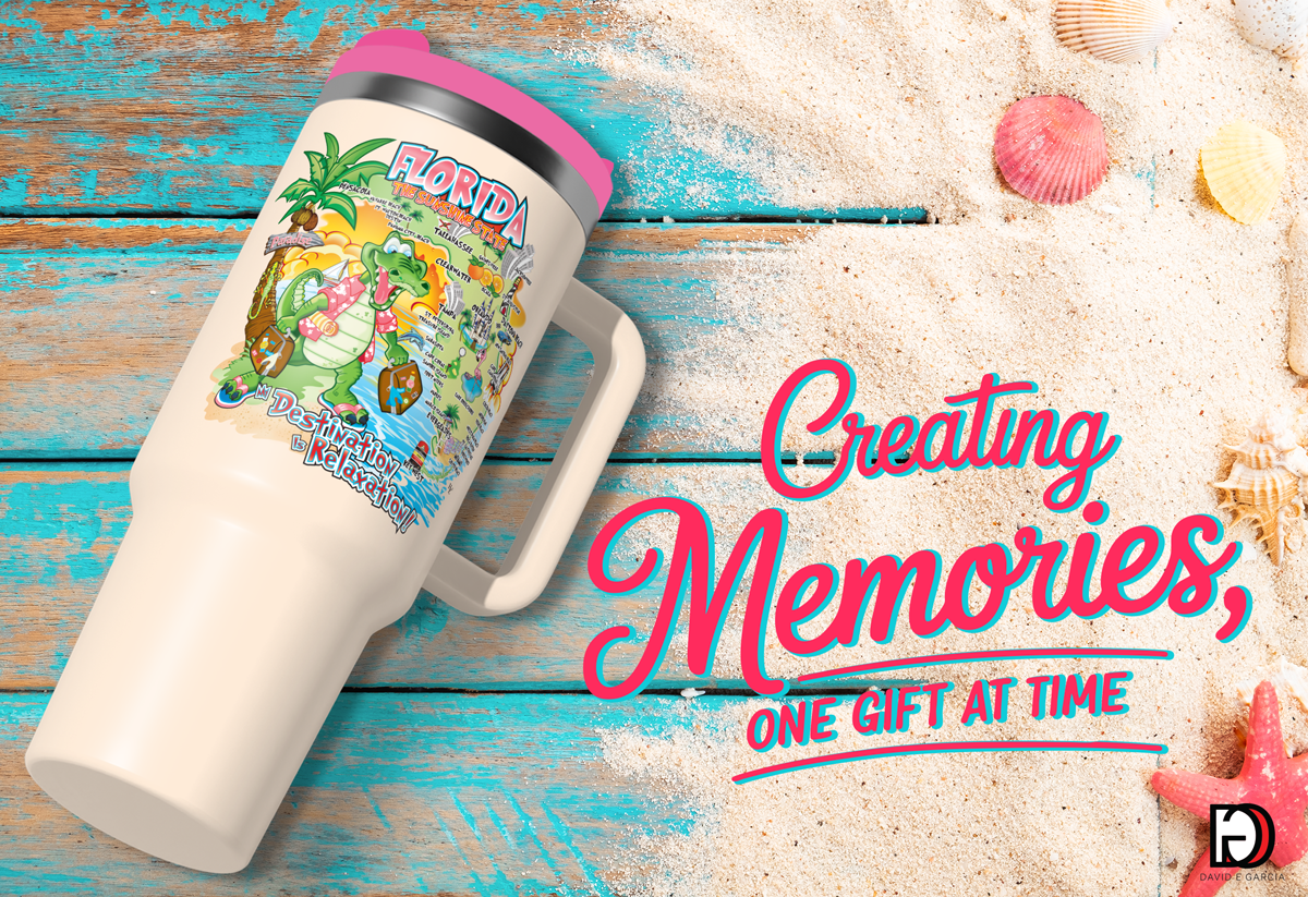 From playful tumblers to destination mugs, each product is crafted to evoke happiness and nostalgia.