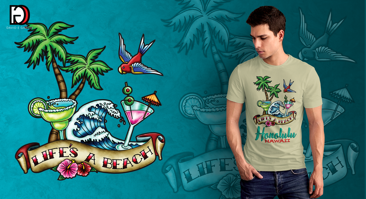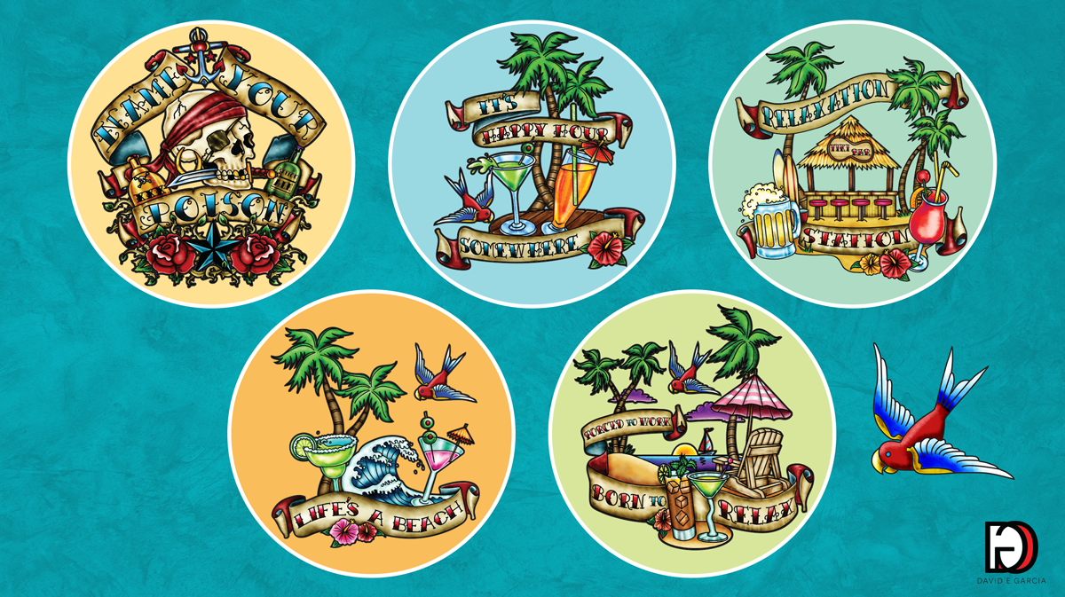 The Tattoo Art Resort Collection is a premium apparel concept designed to elevate traditional resort and souvenir wear. The goal was to create a customizable product line that merges the authenticity of traditional tattoo art with the exclusivity of designer resort fashion. Each piece can be tailored to feature a resort, city, or action name—allowing retailers to offer guests a distinctive keepsake that feels fashionable and collectable rather than disposable.