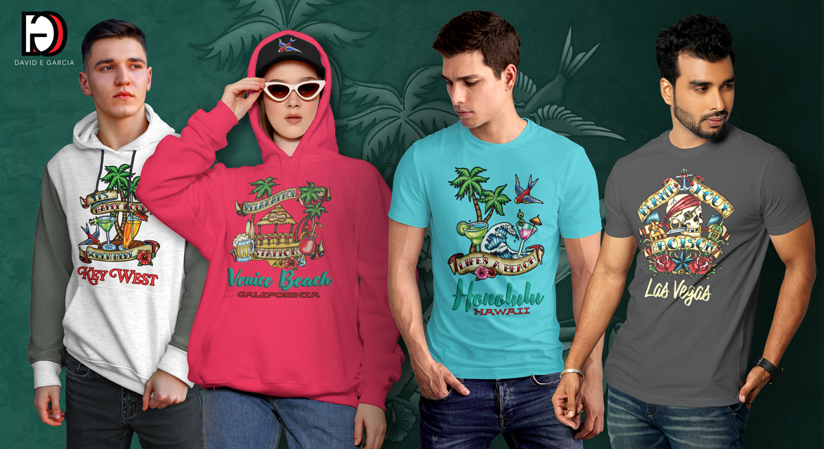 The Tattoo Art Resort Collection is a high-end apparel concept that merges traditional tattoo artistry with modern resort fashion. Designed as a customizable line for boutique resorts, cruise lines, and theme parks, each piece integrates hand-drawn motifs with location-specific typography to create one-of-a-kind designs that travelers actually want to wear. The result is a fresh, fashion-forward take on souvenir wear—bold, collectible, and wearable beyond the vacation.